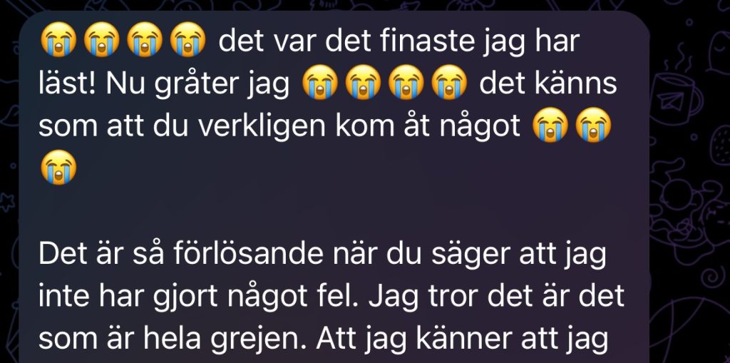Du är så generös, man får liksom så mycket mer än vad man betalar för och du är så jäkla engagerad! 😍💕❤️🩷”